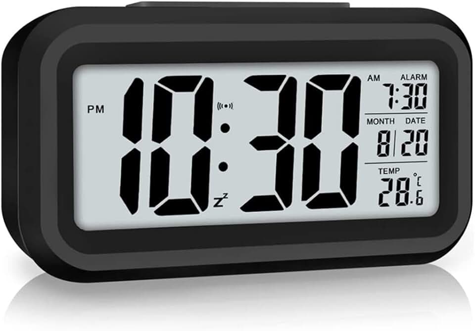 Led Display Digital Alarm Clock Snooze Battery Clock with Date Calendar Temperature for Bedroom Home Office Travel