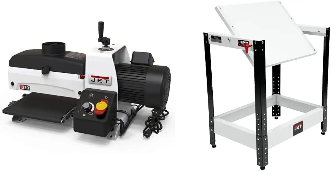 JET JWDS-1020, 10-Inch Benchtop Drum Sander, 115V 1PH (723510) and Flip Top Benchtop Machine Table (728200)