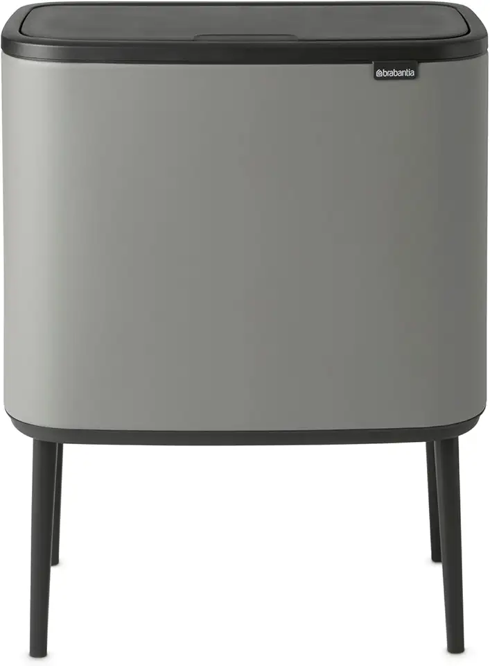 Brabantia Bo Trash Can - 1 x 9.5 Gal Inner Bucket (Mineral Concrete Gray) Waste/Recycling Garbage Can, Removable Compartment + Free Bags