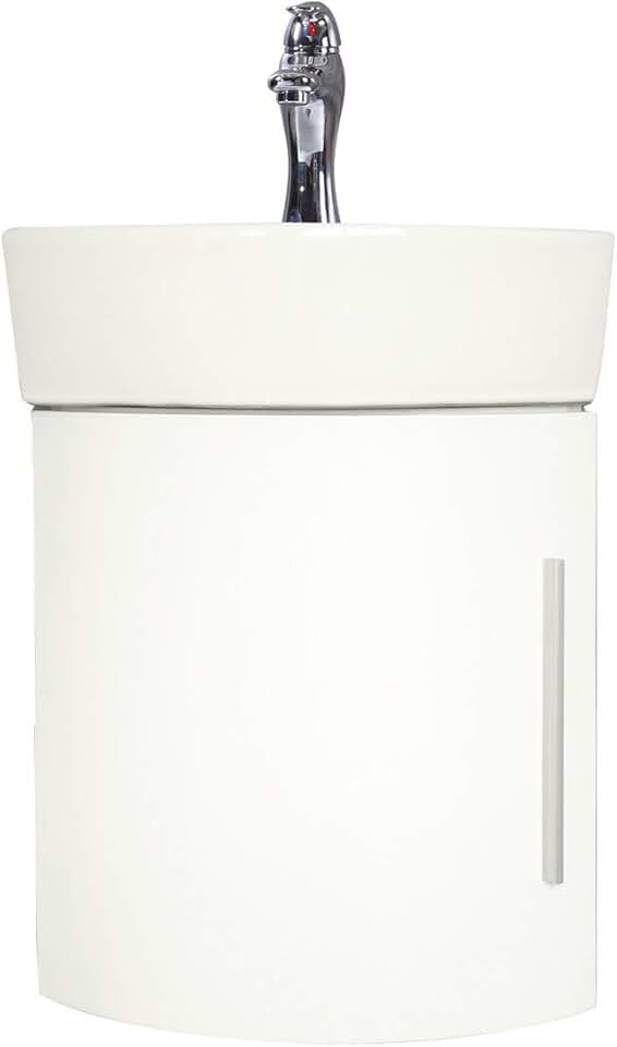 Renovators Supply Myrtle Corner Vanity Sink - Wall Mount Vanity Sink with White Cabinet - Heavy-Duty Bathroom Vanity Sink with Chrome Faucet and Pop up Drain - Porcelain Scratch and Stain Resistant