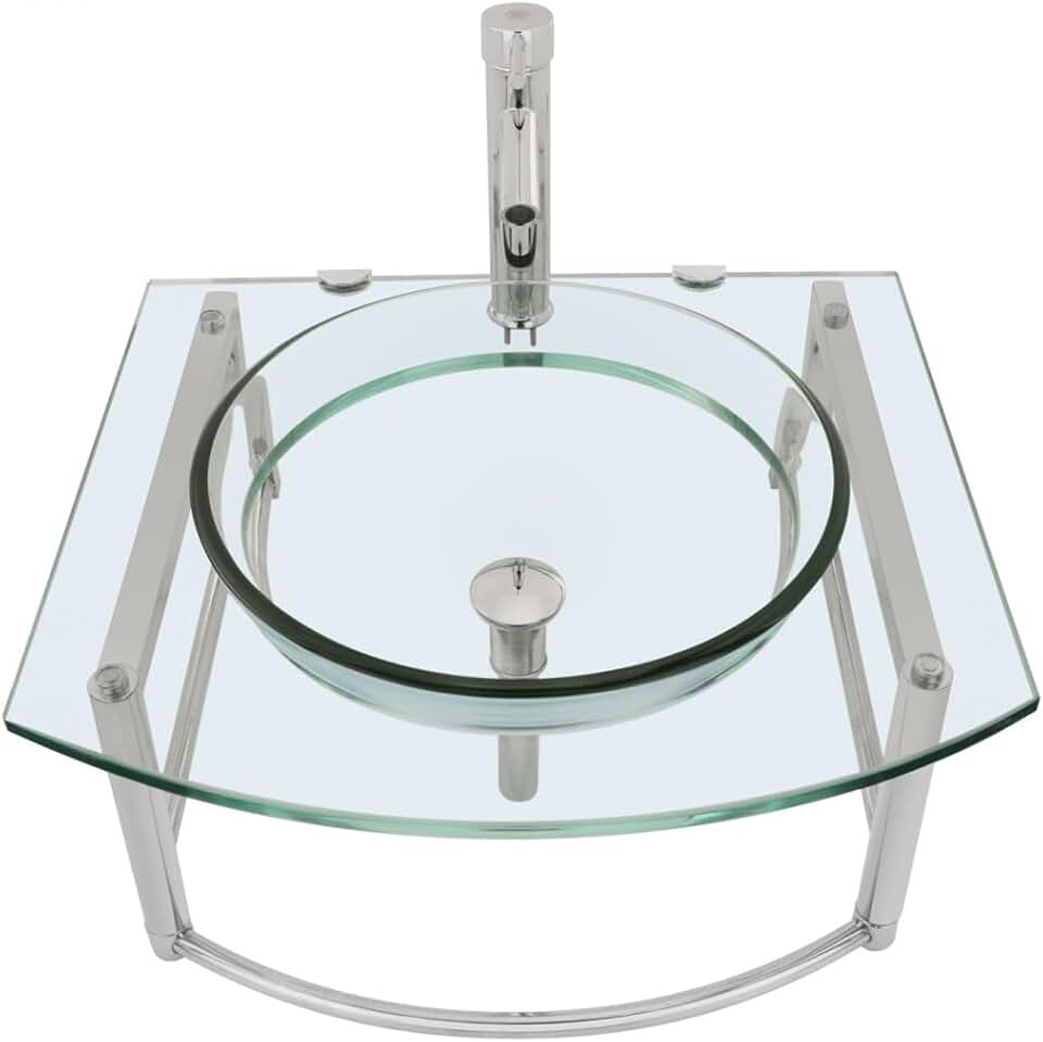 Renovators Supply - Haiku Modern Glass Wall Mount Sink - Tempered Glass Wall Hung Sink - Modern Bathroom Sink for Small Spaces - Small Vessel Sink with Chrome Faucet, Pop Up Drain and Towel Bar