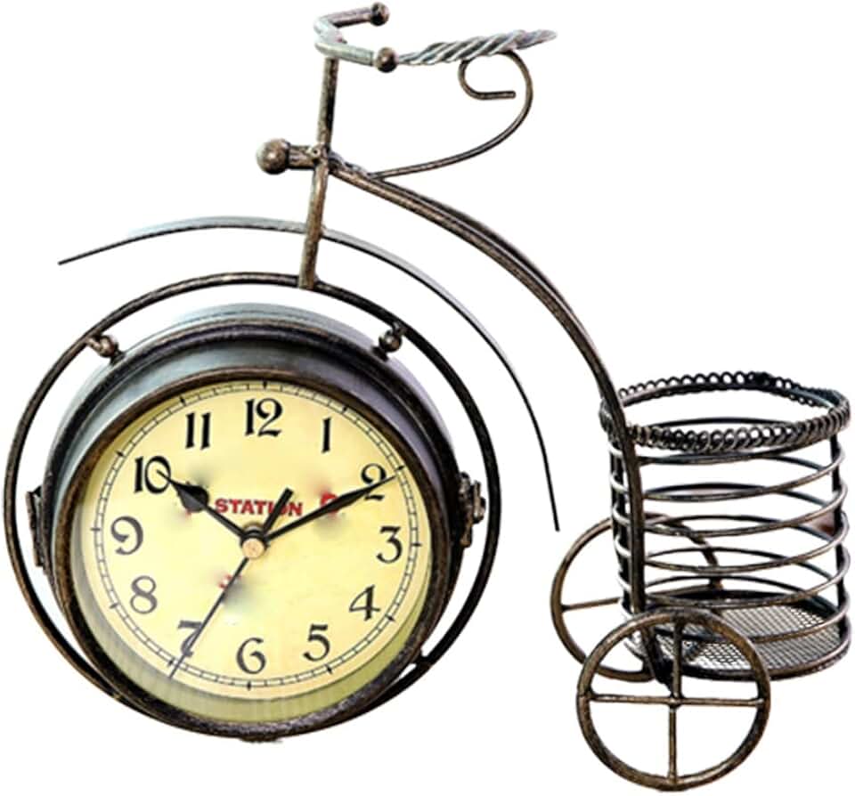 Retro Vintage Silent Iron Bike Bicycle Clock Creative Table Alarm Clock Office Living Room Ornament Decoration