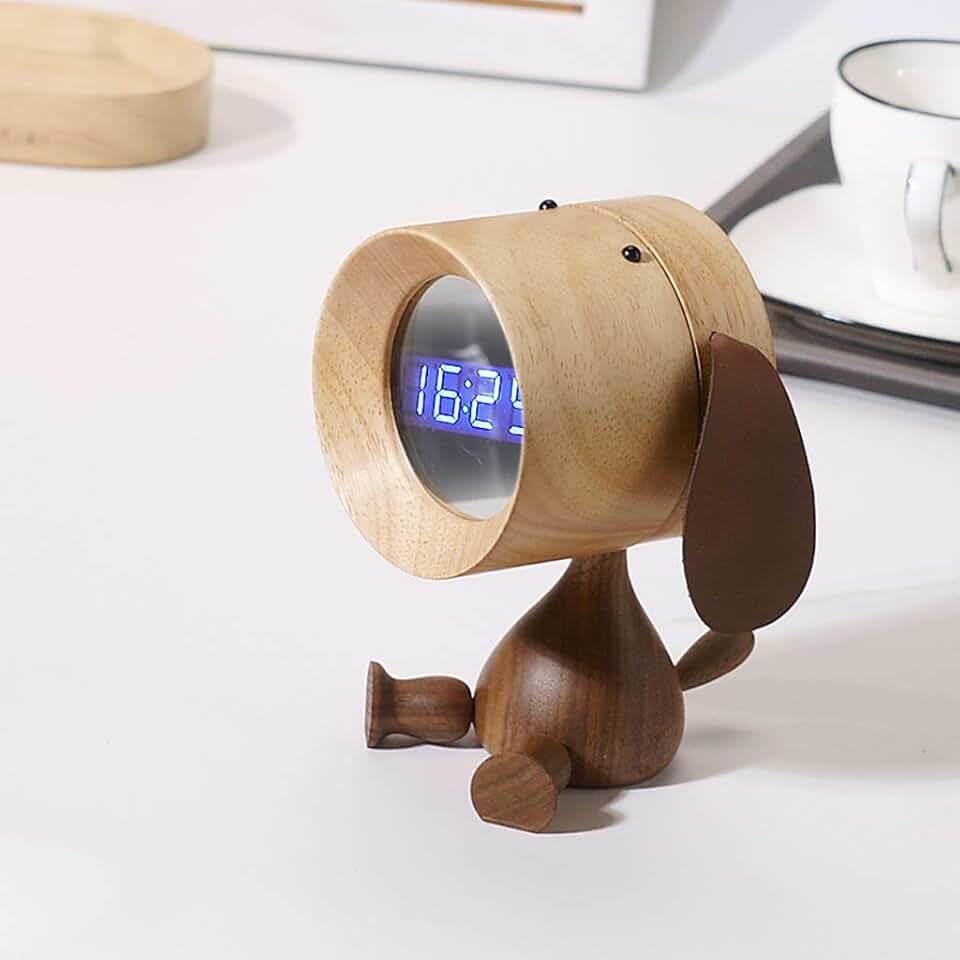Solid Wood Puppy Alarm Clock Student Children’s Gift Bedside Desktop Nordic Style Cartoon