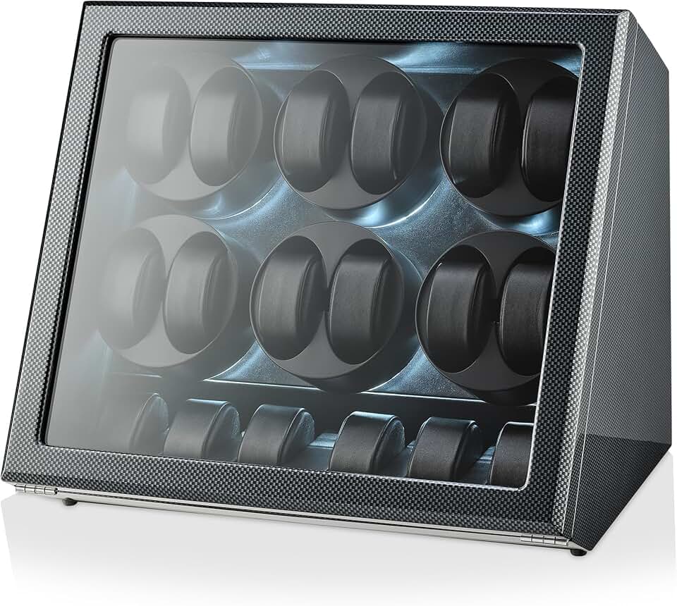 TIMECUBE 12 Watch Winder with 6 Storage Slots, LED Light and Automatic Motor-Stop