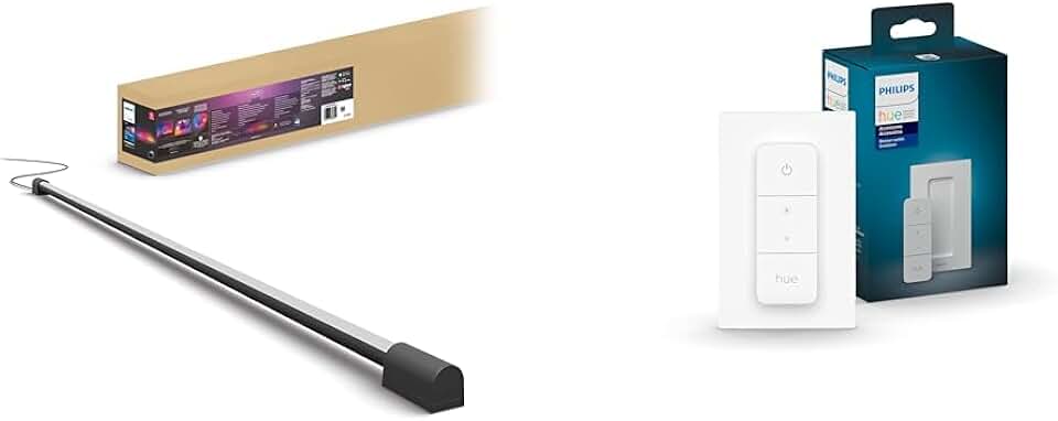 Philips Hue Large Smart Light Tube, Black - White and Color Ambiance LED Color-Changing Light & Smart Dimmer Switch with Remote, White - 1 Pack - Turns Hue Lights On, Off