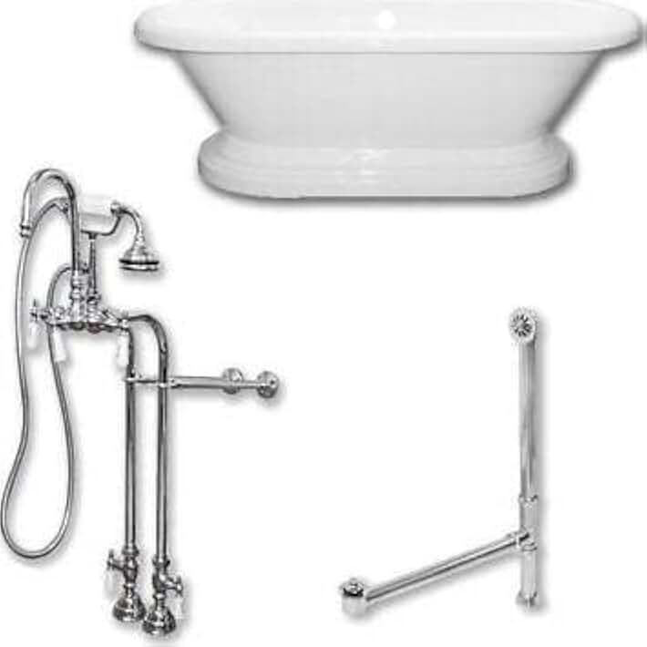 Acrylic Double Ended Pedestal Bathtub 60" X 30" with no Faucet Drillings and Complete Polished Chrome Plumbing Package