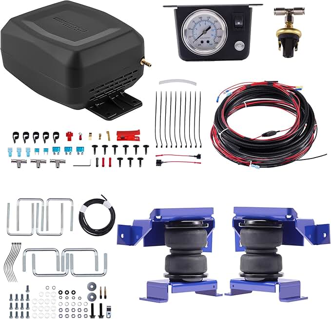 maXpeedingrods On Board Air Compressor Kit with Low Pressure Sensor & 5000 lbs Air Suspension Bags Kit for Ford F-250 F-350 4WD 2WD 1999-2007 with Gooseneck Hitch 1105 / 1199R