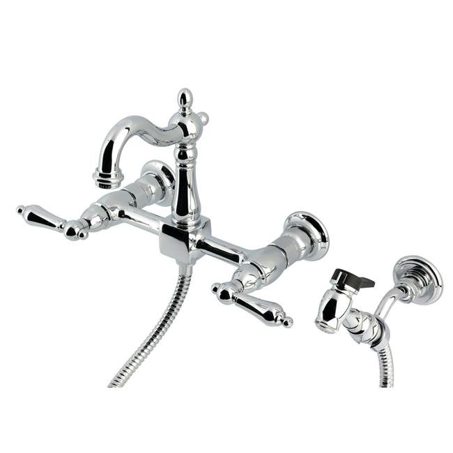 Kingston Brass Heritage Wall Mount Bridge Kitchen Faucet with Brass Sprayer, Polished Chrome