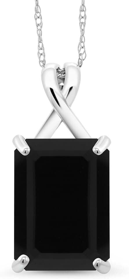 Gem Stone King 10K White Gold 14X10MM Emerald Cut Gemstone Birthstone Pendant Necklace | Gold Necklace For Women | With 18 Inch 10K White Gold Chain