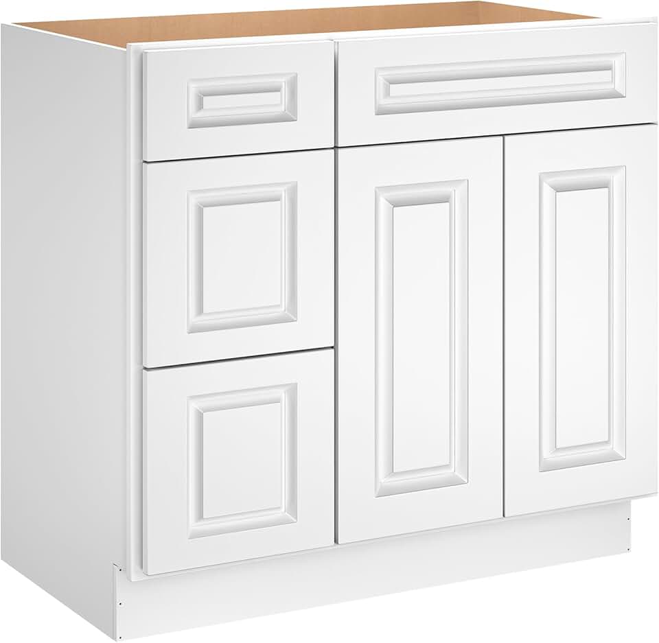 LOVMOR 36'' Bathroom Vanity Sink Base Cabinet with 2-Doors, Storage Cabinet with 3-Drawers on The Left, Suitable for Bathrooms, Kitchens, Laundry Rooms and Other Places.