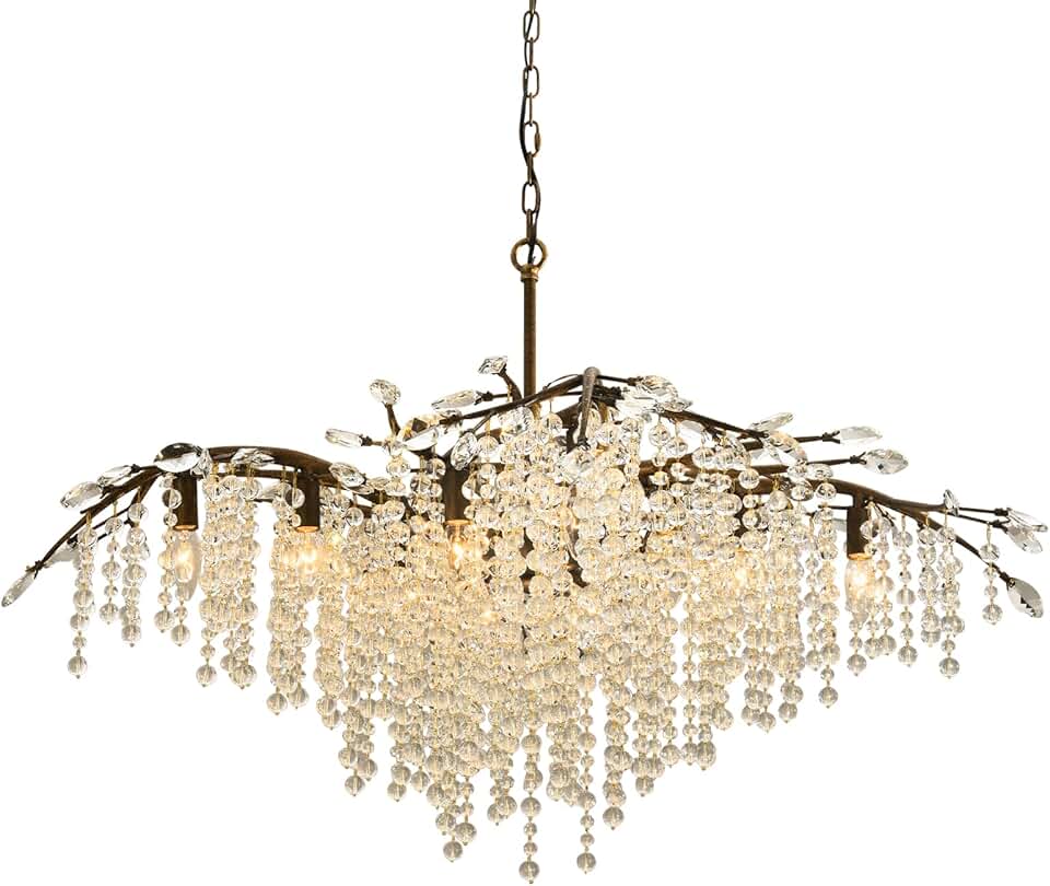 Large Modern Farmhouse Crystal Chandelier Antique Vintage Tree Branch Chandeliers for Dining Room Living Room Bedroom Entryway Foyer Rustic 12-Light Dining Room Light Fixture Adjustable (42")