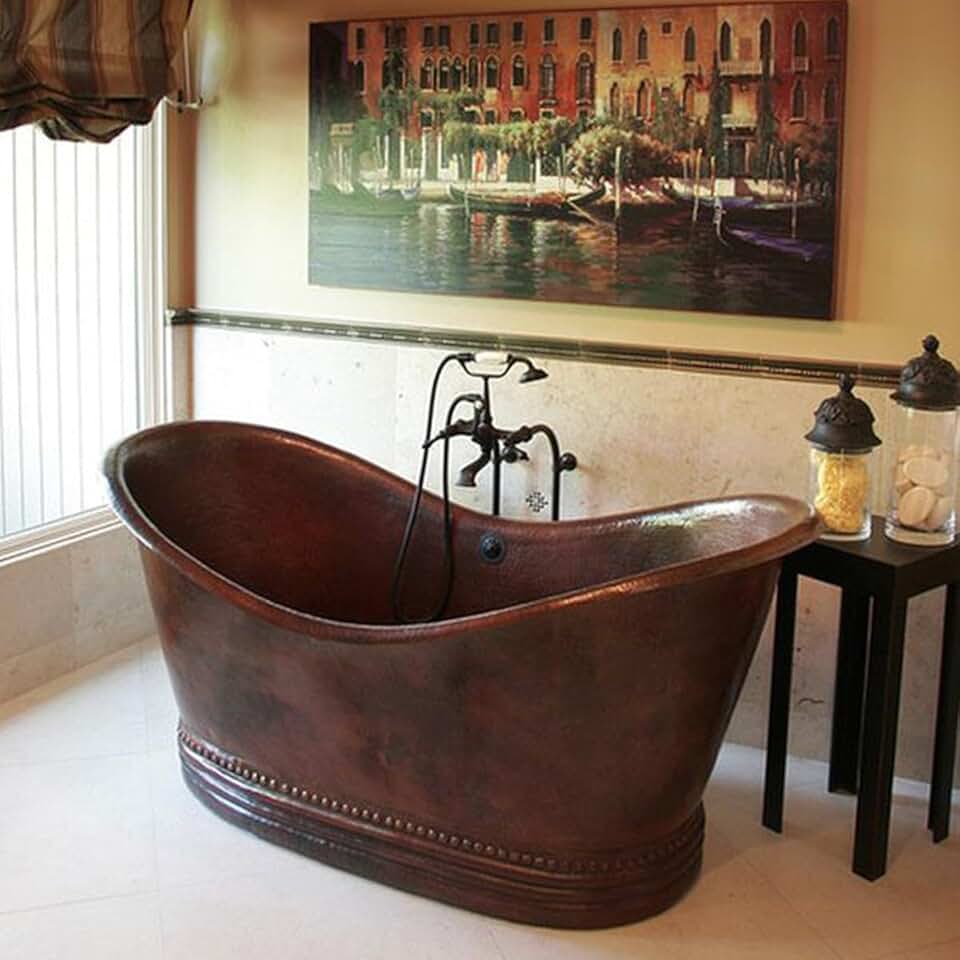 SINDA Hammered Copper Double-Slipper Tub with Pedestal, No overflow, 48"L x 32"W x 27"H