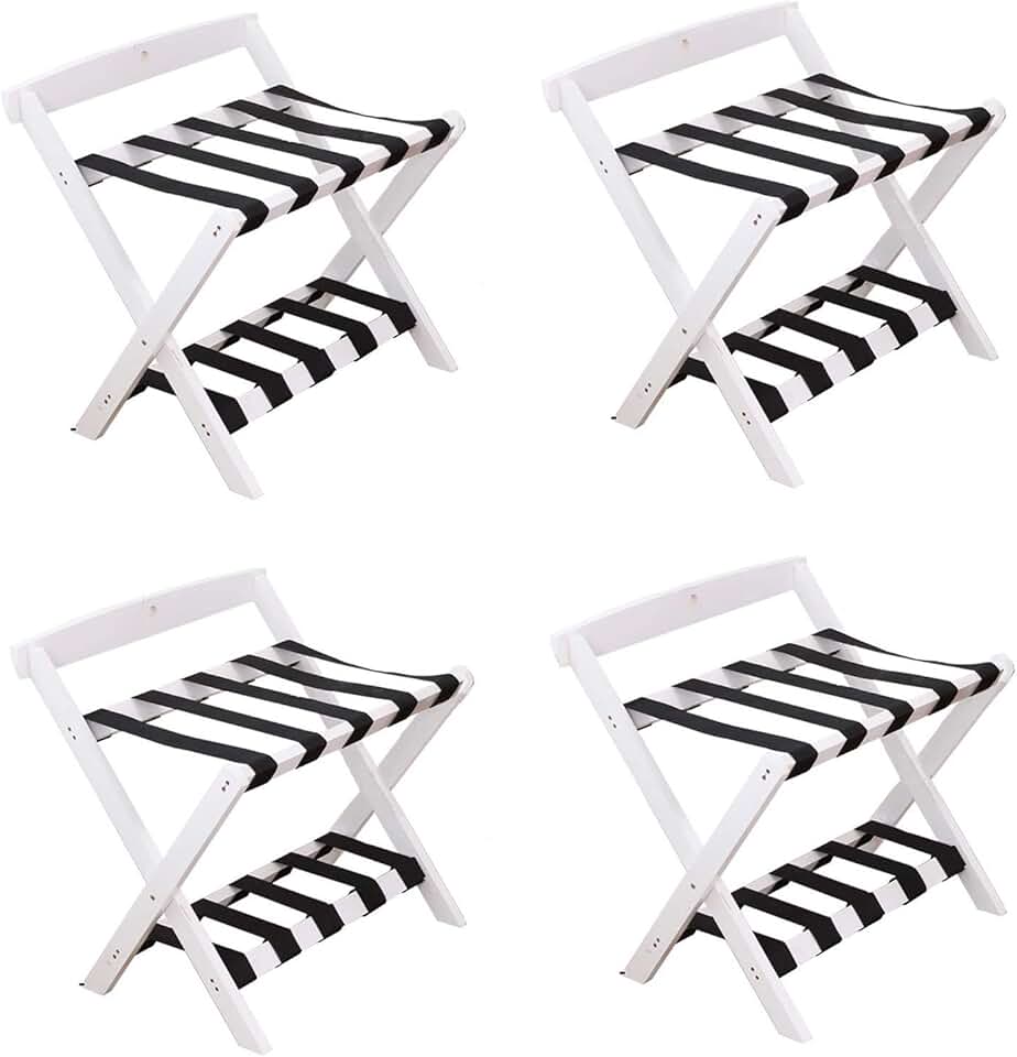 Set of 4 Suitcase Racks - Hotel Suitcase Rack for Guest Room, Double Layer Solid Wood Luggage Rack, Foldable Travel Bag Rack, Guest Room Travel Bag Rack Floor Shelf (Color : B)