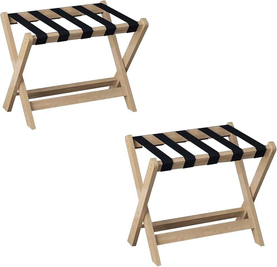 2PCS Suitcase Stand with Shelf - Luggage Rack, Solid Wood Hotel Storage Rack, Household Hanger Furniture Landing Luggage Shelf, Suitcase Stand with Nylon Straps, 60X40X50CM (Color : Natural)