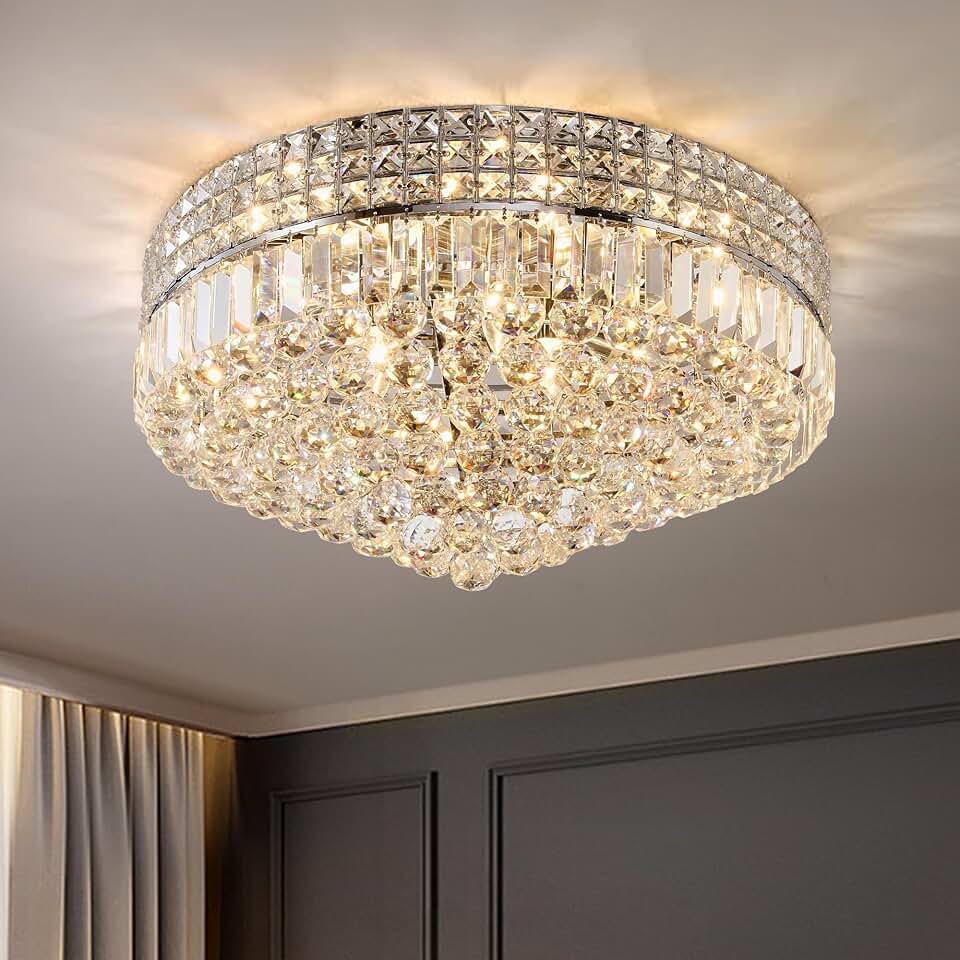 WABON Crystal Ceiling Light, D23.6 Modern Ceiling Light Fixture, 11 Lights Round Hallway Hanging Large Ceiling Light, Dining Room Living Room Bedroom Bathroom