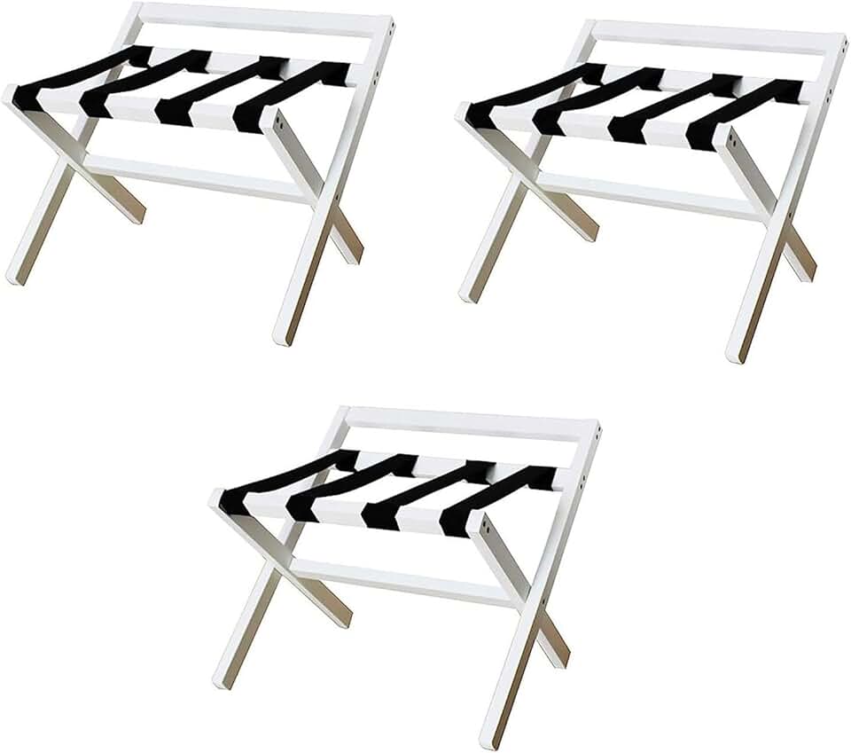 3pcs Folding Luggage Rack - Hotel Wooden Suitcase Stand, Travel Bag Holder with Nylon Straps, Hotel Suitcase Stand, Luggage Stool, for Hotel Bedrooms