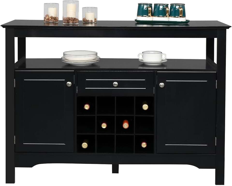 NA Two Doors One Drawer with Wine Rack Sideboard Entrance Cabinet Black