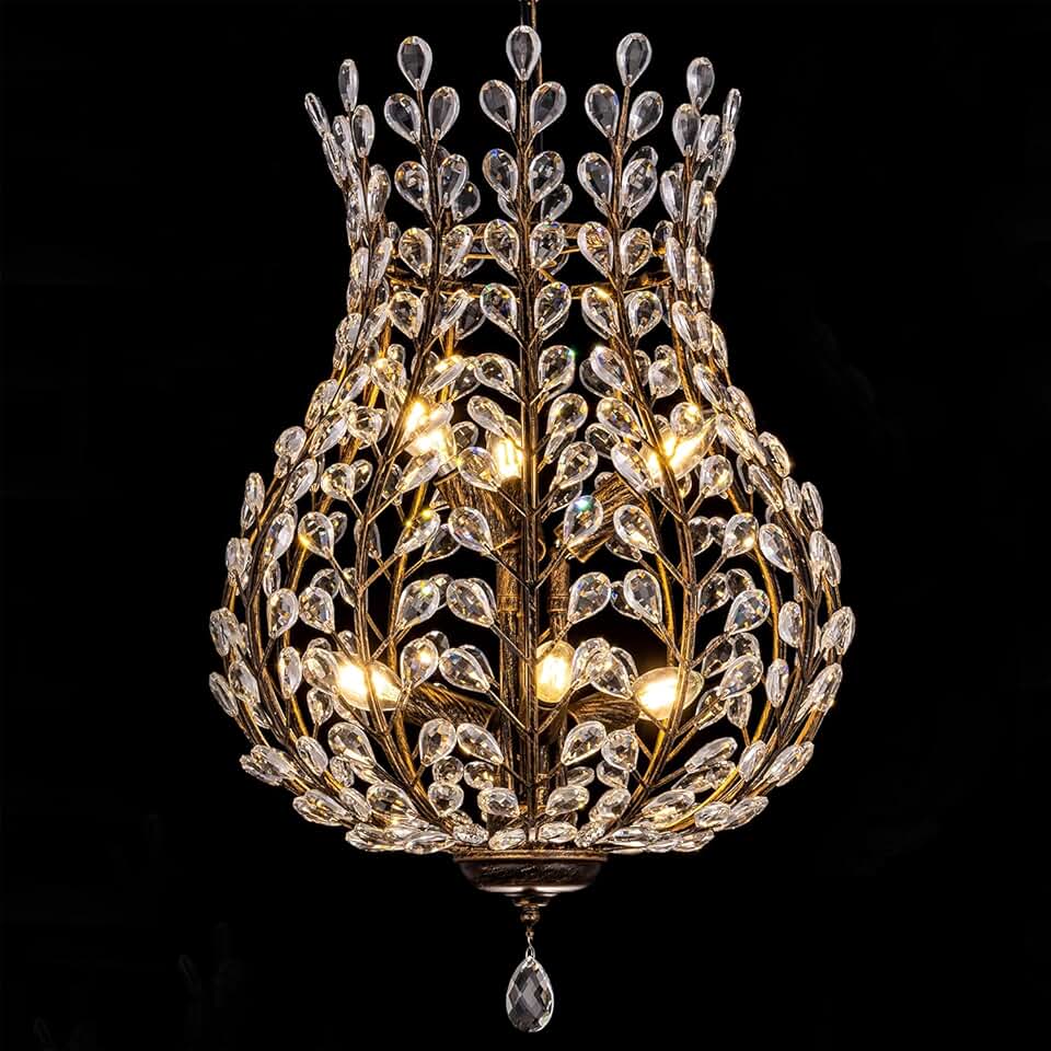 TOCHIC Vintage Crystal Chandelier, 6 Lights Farmhouse Antique Bronze Chandelier for Dining Room, 16.7" Hanging Ceiling Pendant Light Fixture for Foyer, Living Room, Bedroom, Hallway, Entryway