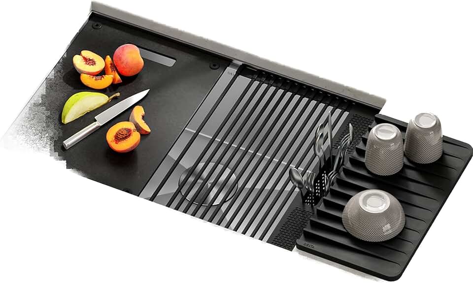 DELTA FAUCET Rivet 27-Inch Workstation Kitchen Sink Undermount 16 Gauge Stainless Steel Single Bowl with WorkFlow Ledge and Chef’s Kit of 6 Accessories, 95B931-27S-SS