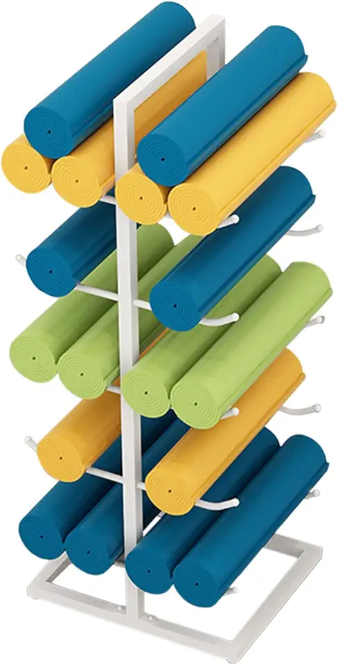 Home Gym/Studio/Workout Room Yoga Mat Storage Holder, Metal 5-Shelf Foam Roller Display Rack Stand, Holds 10-20 Exercise Mats