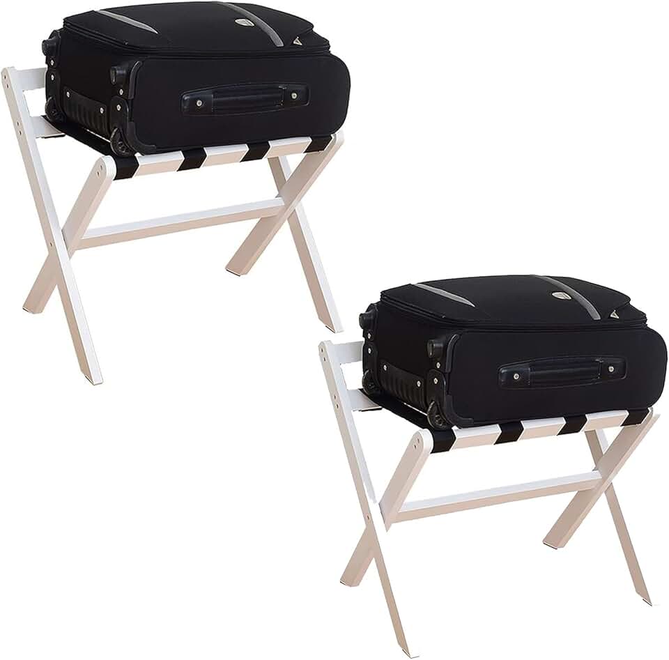 Luggage Rack - Luggage Stand Foldable, Storage Rack Display Stand with 4 Nylon Straps, Professional Hotel Suitcase Holder, Home Solid Wood Foldable Luggage Rack, 60X48X55CM (Color : White)