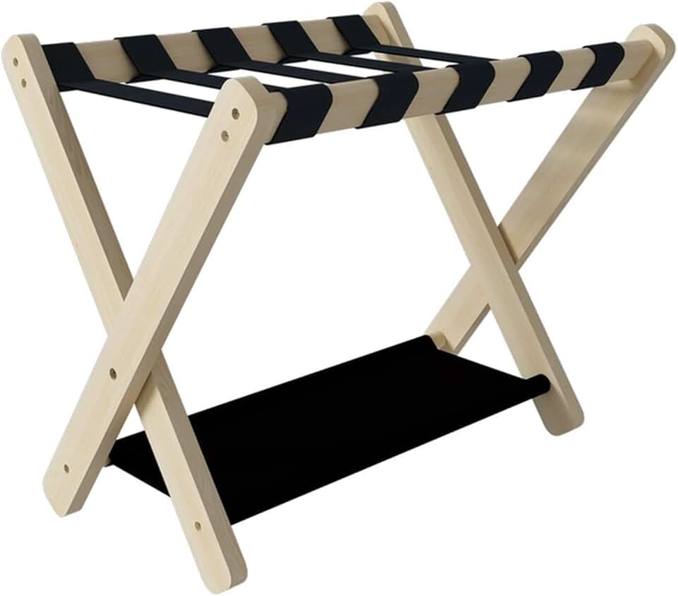 Luggage Rack for Guest Room - Luggage Stand Rack, 2 Tier Home Bedroom Suitcase Travel Chest Storage Stand, Suitcase Storage Stand with Nylon Straps, Solid Wood Travel Luggage Stand, 70X43X50
