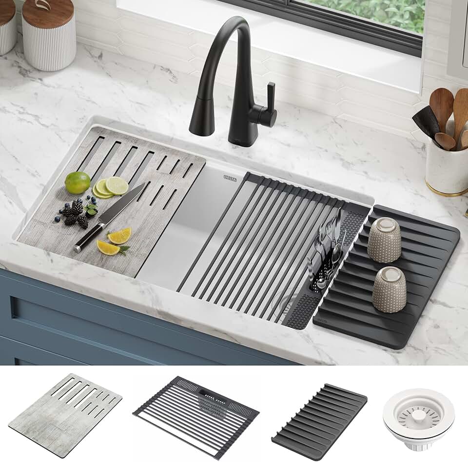 DELTA FAUCET Everest 30-inch Granite Composite Workstation Kitchen Sink Undermount Single Bowl with WorkFlow Ledge and Accessories in White, 75B933-30S-WH