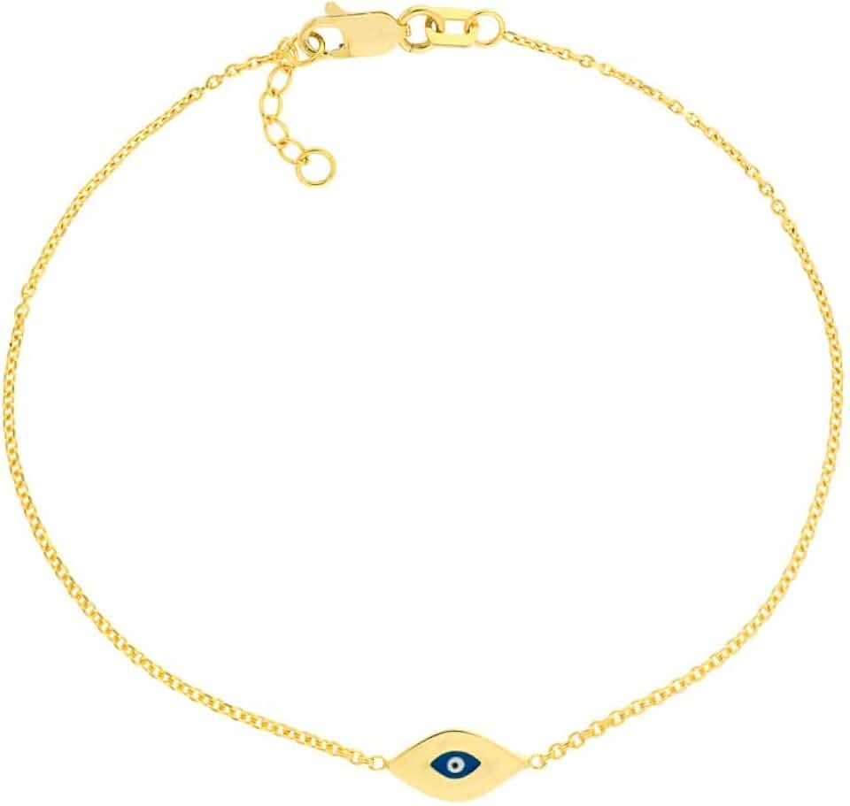 14k Gold Adjustable Side ways Mini Evil Eye Bracelet 7.50 Inch Jewelry for Women in Rose Gold White Gold Yellow Gold