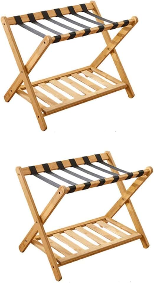 2pcs 2 Tier Home Suitcase Stand with Shoe Shelf - Folding Luggage Rack Suitcase Stand, Suitcase Rack with Storage Shelf, 68 x 45 x 55cm, Luggage Stand for Hotel bedrooms, Guest Rooms