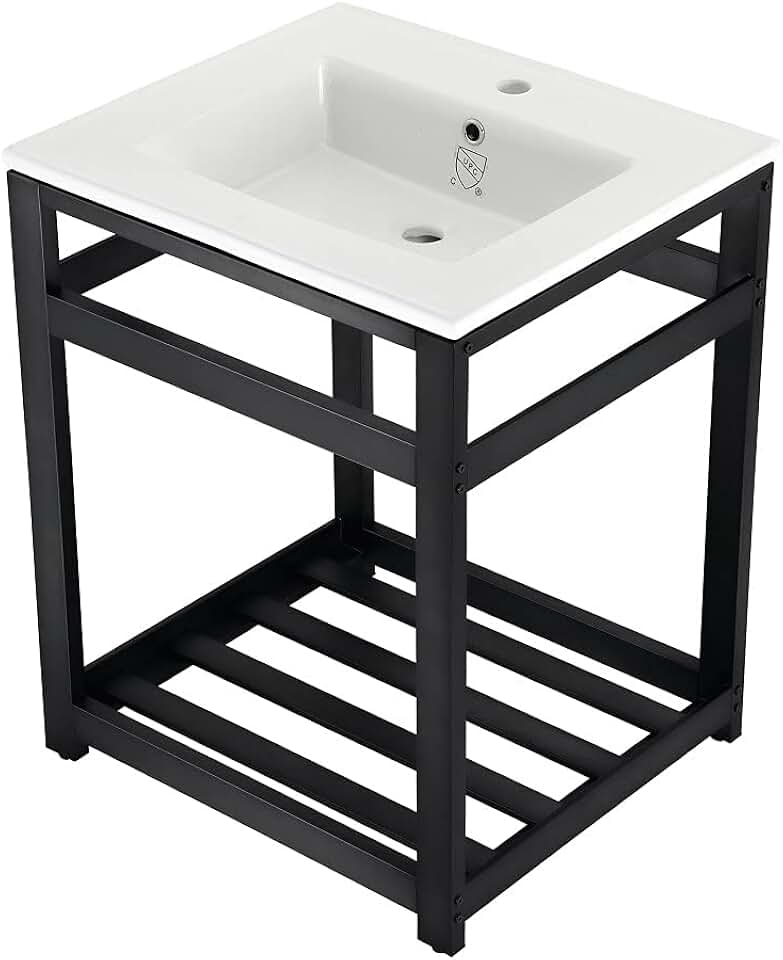 Kingston Brass VWP2522A0 Quadras Console Sink, 25-3/16" Length x 22-1/16" Width, White/Matte Black