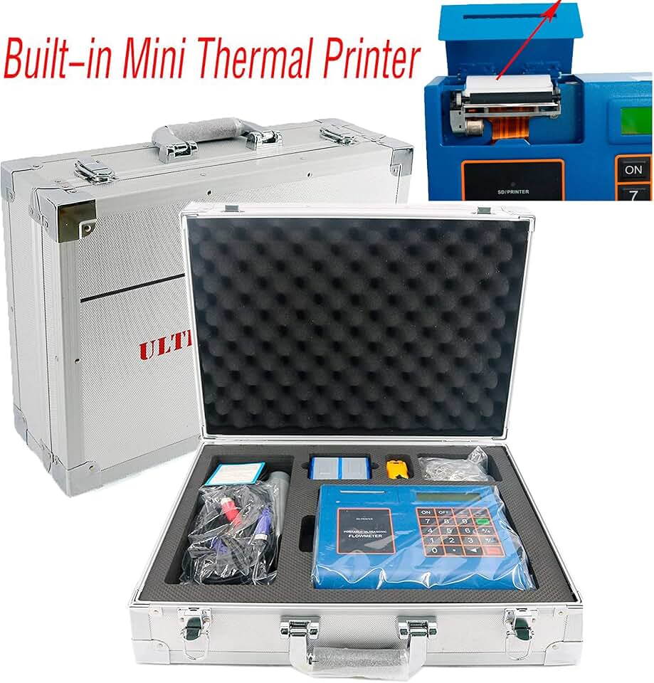 Portable Ultrasonic Liquid Flow Meter Tester Digital Ultrasonic Flowmeter TUF-2000P-TM-1 Built-in Printer SD Card Pipe Diameter DN50 to 700mm TM-1 Medium Clamp Transducer -30 to 90 Degree