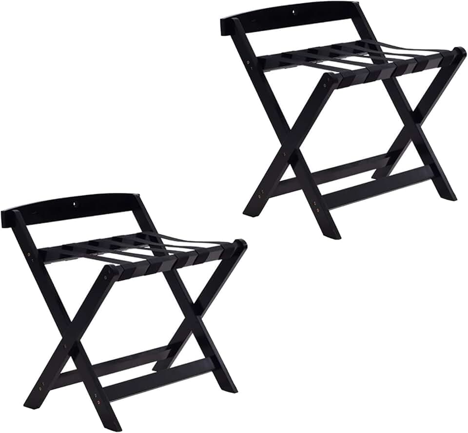 Guest Room Luggage Rack, Folding Suitcase Stand Luggage Rack, Bedside Storage Rack, Clothes Rack, Foldable Solid Wood Luggage Rack, for Bedroom, Hotel, Guest Room, Hotel (Color : Black, Size