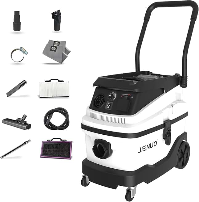 Dust Extractor with Semi Auto Filter clean, 8 Gallon Wet/Dry HEPA Filter Vacuum with Water Filtration, Powerful Suction Shop Vac for cleaning construction sites, factory shops and home workshop