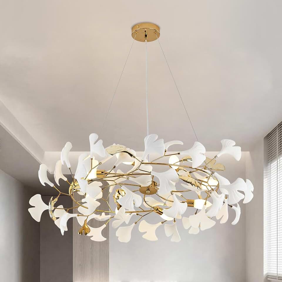 Chandeliers for Dining Room - D31.4'' Modern Gold Round Brass Tree Branch Chandelier, Art Deco Leaf Foyer Bathroom Chandelier for Bedroom, Living Room, High Ceilings