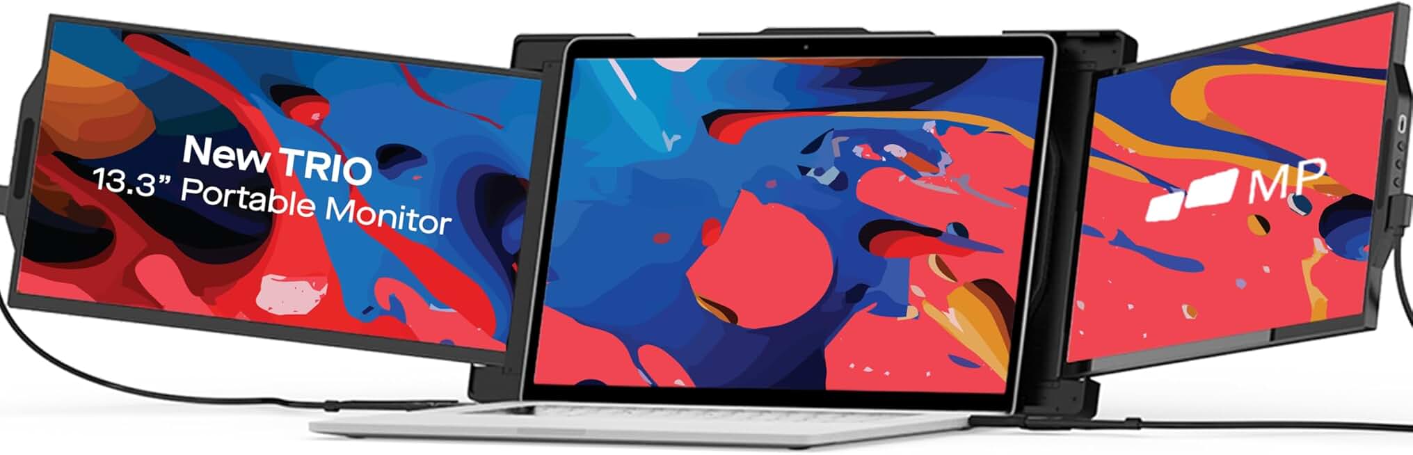 Trio 13.3" Mobile Pixels Portable Laptop Monitor(2024 Version), FHD IPS Triple Monitor with Built-in Kickstand, Type-C/USB A Laptop Screen Extender(Optional Magnets), Windows/Android/macOS/Switch
