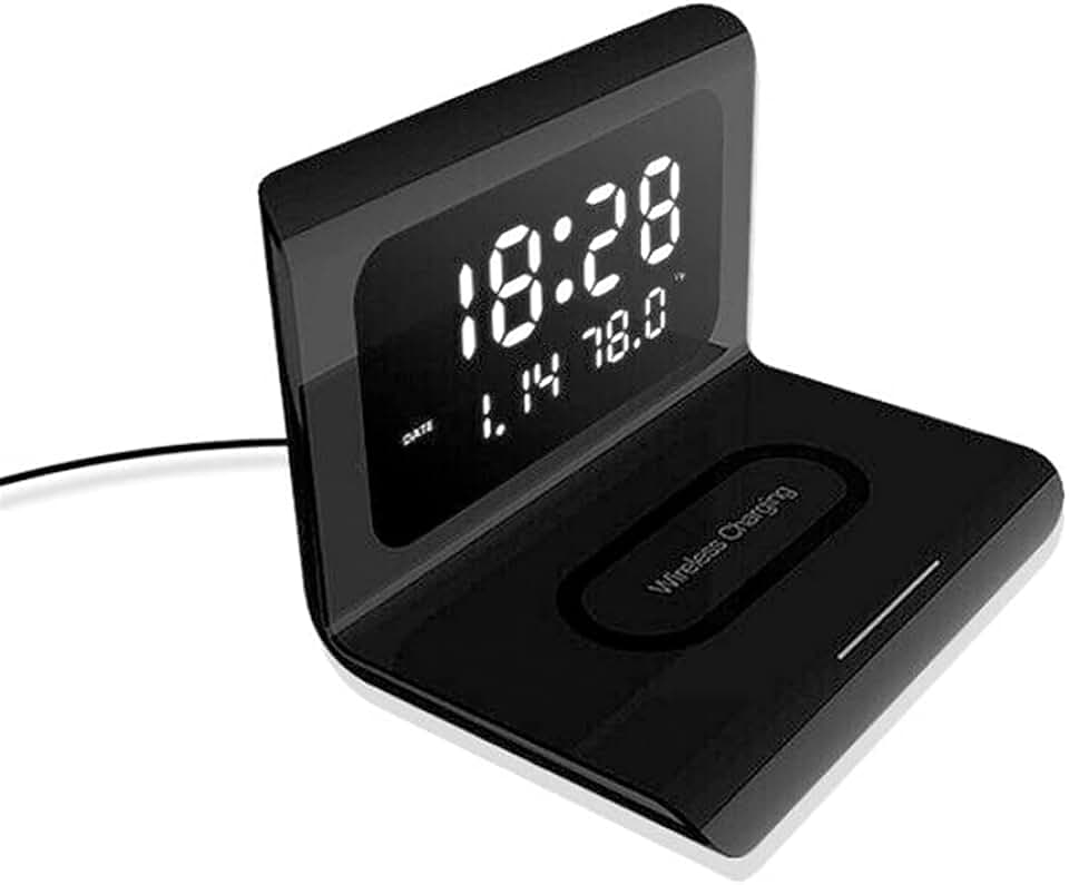 3 in 1 Desktop Digital Alarm Clock with Phone ChargerFast Charging Time Temperature (Color : E, Size : 1)