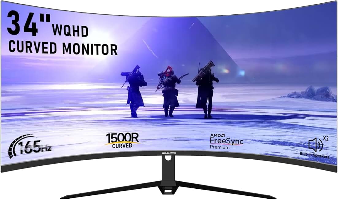 memzuoix 34-Inch Ultrawide Curved Gaming Monitor, 3440x1440 WQHD, Up to 165Hz, 1ms, 1500R Curvature, 100% sRGB, FreeSync Premium, HDMI 2.0 & DisplayPort 1.4, Wall Mountable - Black