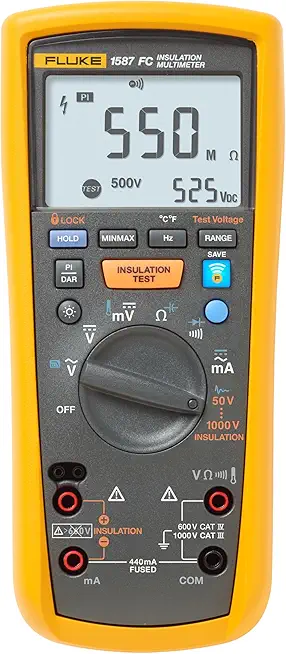 Fluke 1587 FC 2-in-1 Insulation Multimeter, True-RMS, Selectable Insulation Test Voltages Up To 1000 V, Pi/DAR Timed Ratio Tests, Measures Frequency, Includes Low-Pass Filter For Motor Drive VFD