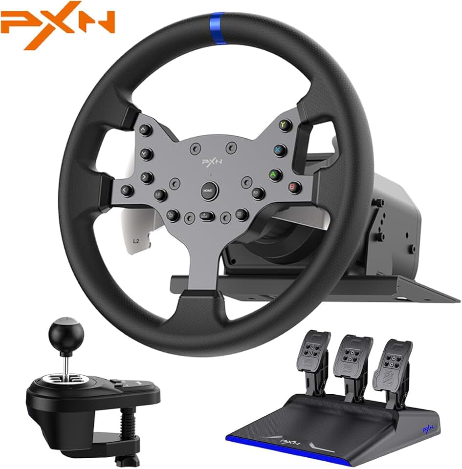 PXN V99 Driving Force Steering Wheel, 3.2Nm Dual-Motor Force Feedback Base, 11.8-inch TPR Rubber Wheel Cover Sim Racing Wheel With Shifter and Pedal, Desk Clamp, for PC, PS4, Xbox One, Xbox Serive X|S