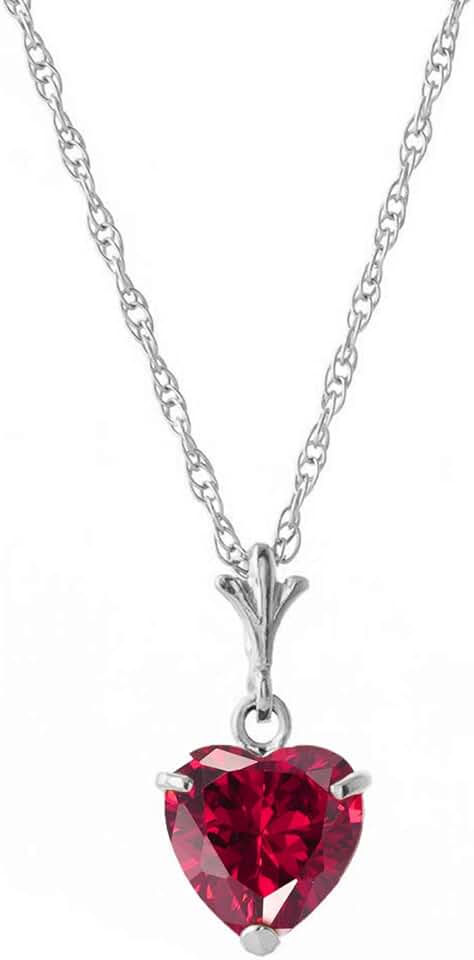 Galaxy Gold GG 14k Solid White Gold Necklace Heart-Shaped Ruby Handcrafted Fine Jewelry Solid Gold Genuine Gemstone. Anniversary Birthday Mother's Day Valentines Graduation, Christmas Spring Summer New Year Women Gift Made in USA Fine Jewelry Availab
