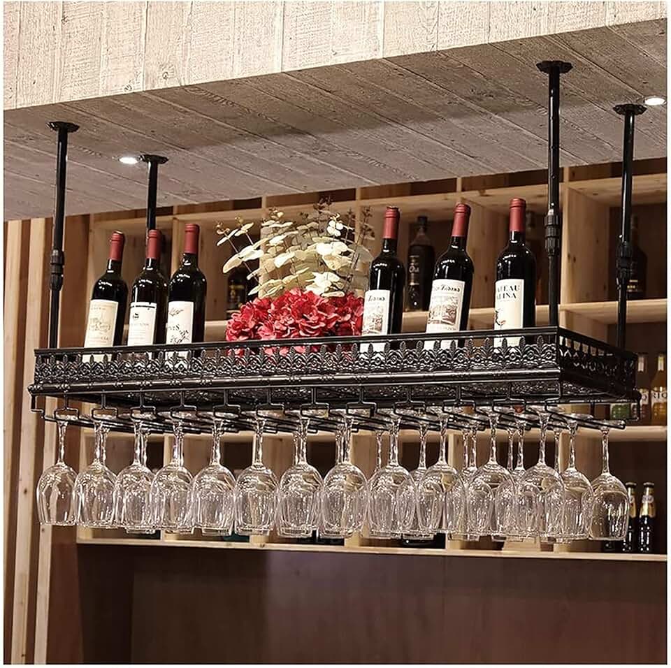Wine Rack Wine Shelf Metal Ceiling Mounted Hanging Stemware Racks Adjustable Height Industrial Wine Cabinet Upside Down Stemware Goblet Wine Glass Holder (Size : 80cm)
