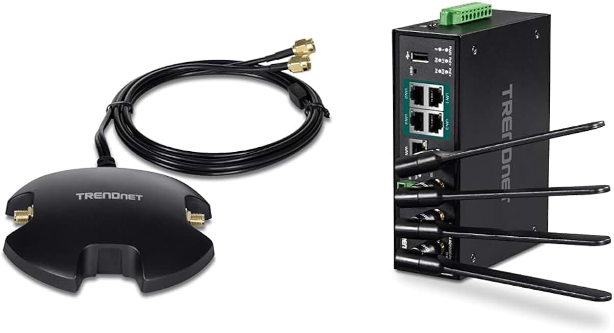 Bundle of TRENDnet Magnetic Dual Antenna Mounting Base RP-SMA Female with RP-SMA Male Extension Cable, TEW-LB101 + TRENDnet Industrial AC1200 Wireless Gigabit PoE+ Router,TI-WP100