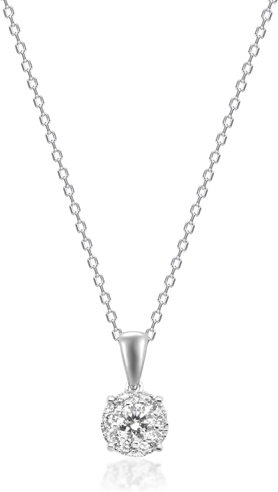 Gin & Grace 14K White Gold Natural Diamond Pendant for women | Ethically, authentically & organically sourced (Round-cut) shaped Diamond hand-crafted jewelry for her | Diamond Necklace for women