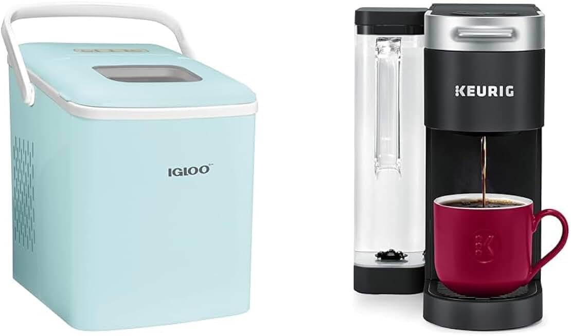 Igloo Automatic Self-Cleaning Portable Electric Countertop Ice MakerMachine with Handle, 26 Pounds in 24 Hours, 9 Ice Cubes Ready in 7 Minutes & Keurig® K-Supreme Single Serve K-Cup Pod Coffee Maker