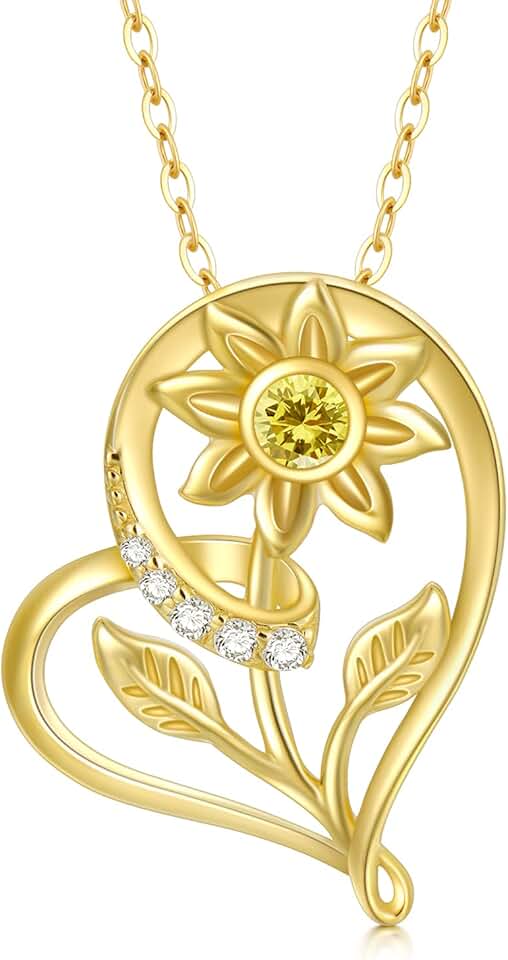 SISGEM Solid 14k Gold Sunflower Heart Necklace for Women, Real Gold Flower Necklace You are May Sunshine Necklace Fine Jewelry Gifts for Wife, Mom,Girlfriend, 16''-18''