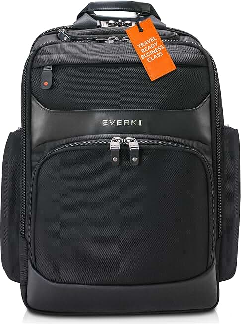 Everki Onyx Premium Business Executive Laptop Backpack - Ballistic Nylon and Leather Office Backpack Laptop Bag, Travel Friendly - Dedicated Compartment up to 17.3", 36L Capacity (EKP132S17), Black