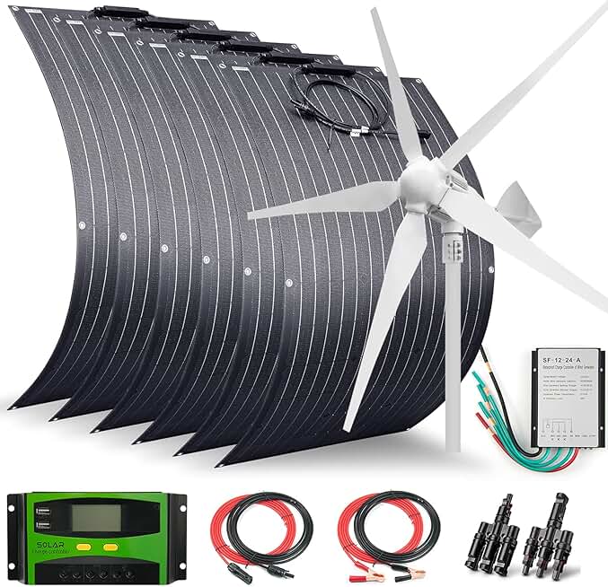 1600 Watts 24 Volts Solar Wind Hybrid System Kit:6pcs 100W ETFE Flexible Monocrystalline Solar Panel+1000W Wind Turbine Generator+Accessories