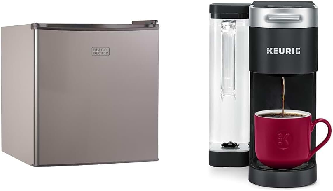 BLACK+DECKER BCRK17V Compact Refrigerator Energy Star Single Door Mini Fridge with Freezer & Keurig® K-Supreme Single Serve K-Cup Pod Coffee Maker, MultiStream Technology, Black
