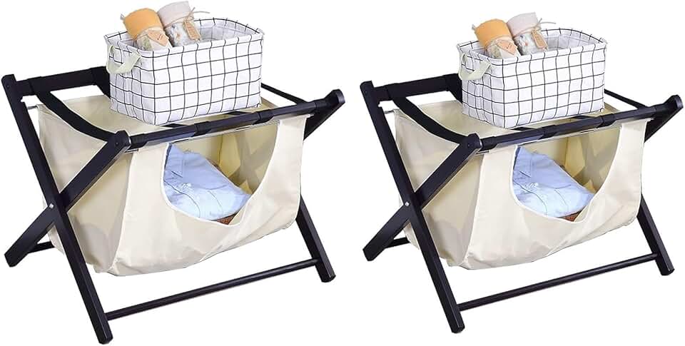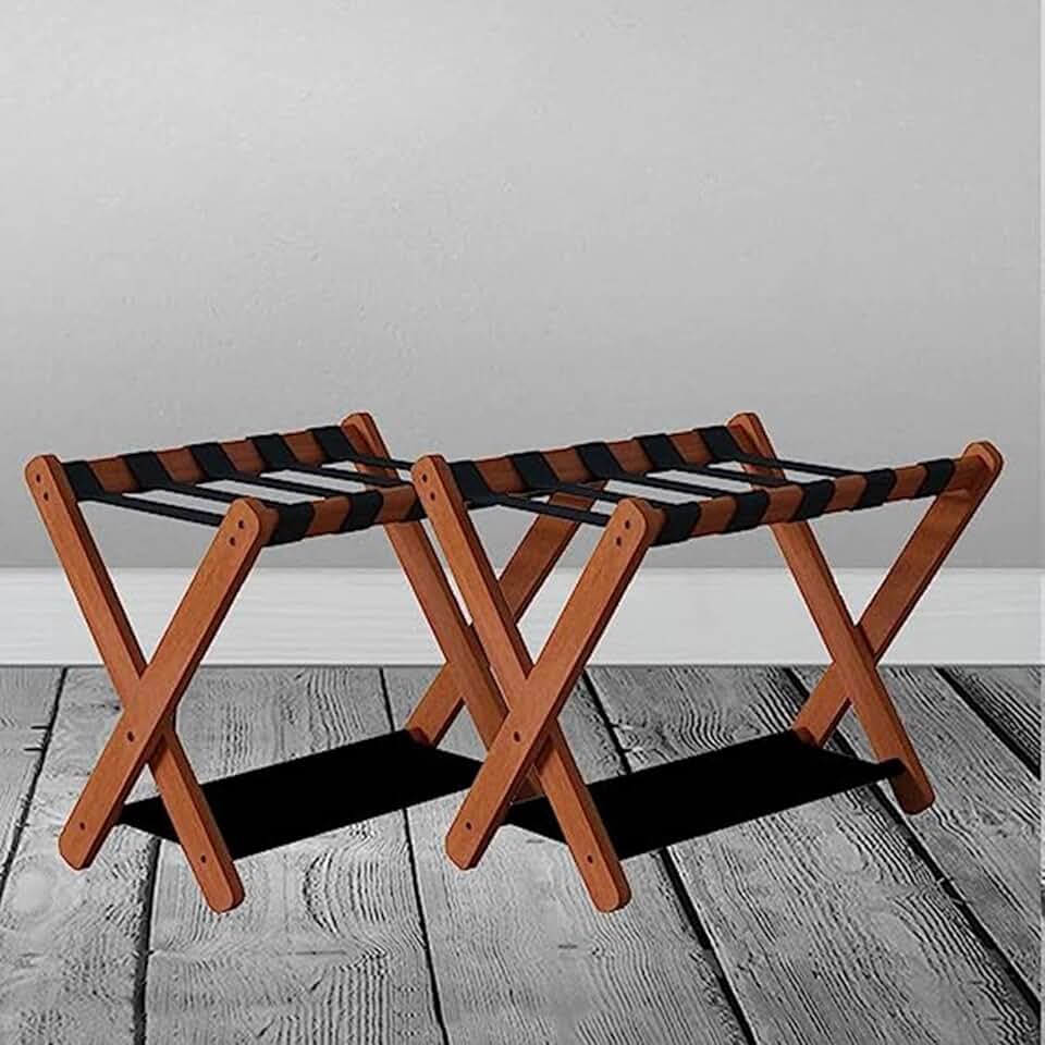 2 Pack Luggage Rack - Suitcase Stand for Guest Room Folding, 2 Layer Luggage Stand Wood, Suitcase Holder Stand with Shelf, Space Saving Luggage Storage Shelf, for Bedroom Hotel Guest Room (C