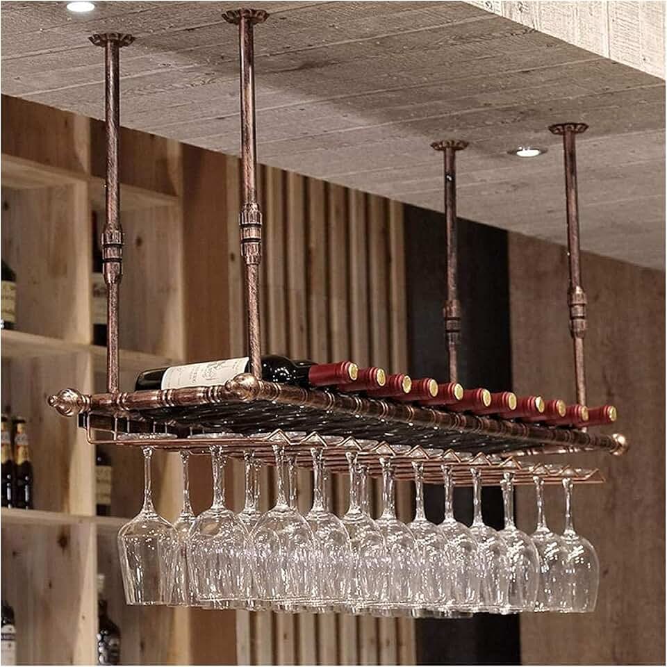 Hanging Wine Rack with Glass Holder and Shelf, Metal Wine Glass Racks Shelf Wine Glass Holder Wine Rack Champagne Glass Rack Glassware Rack Ceiling Wine Holder (Color : Bronze, Size : 100 *